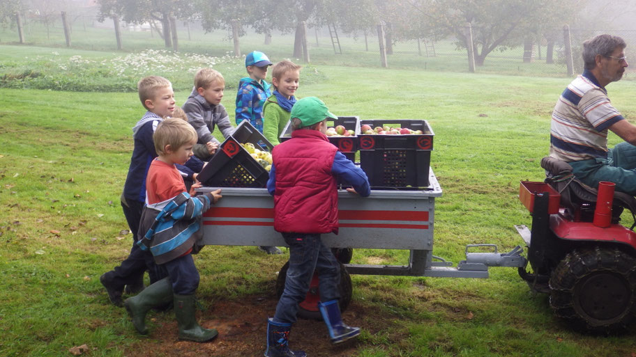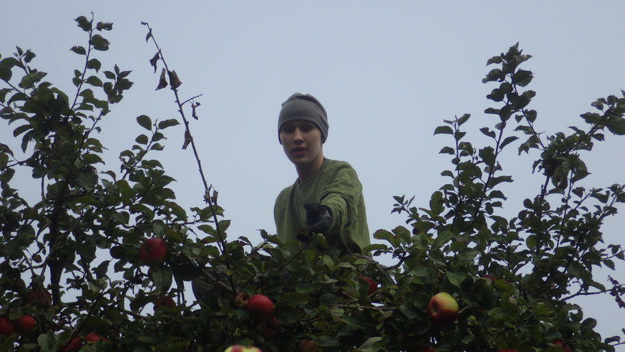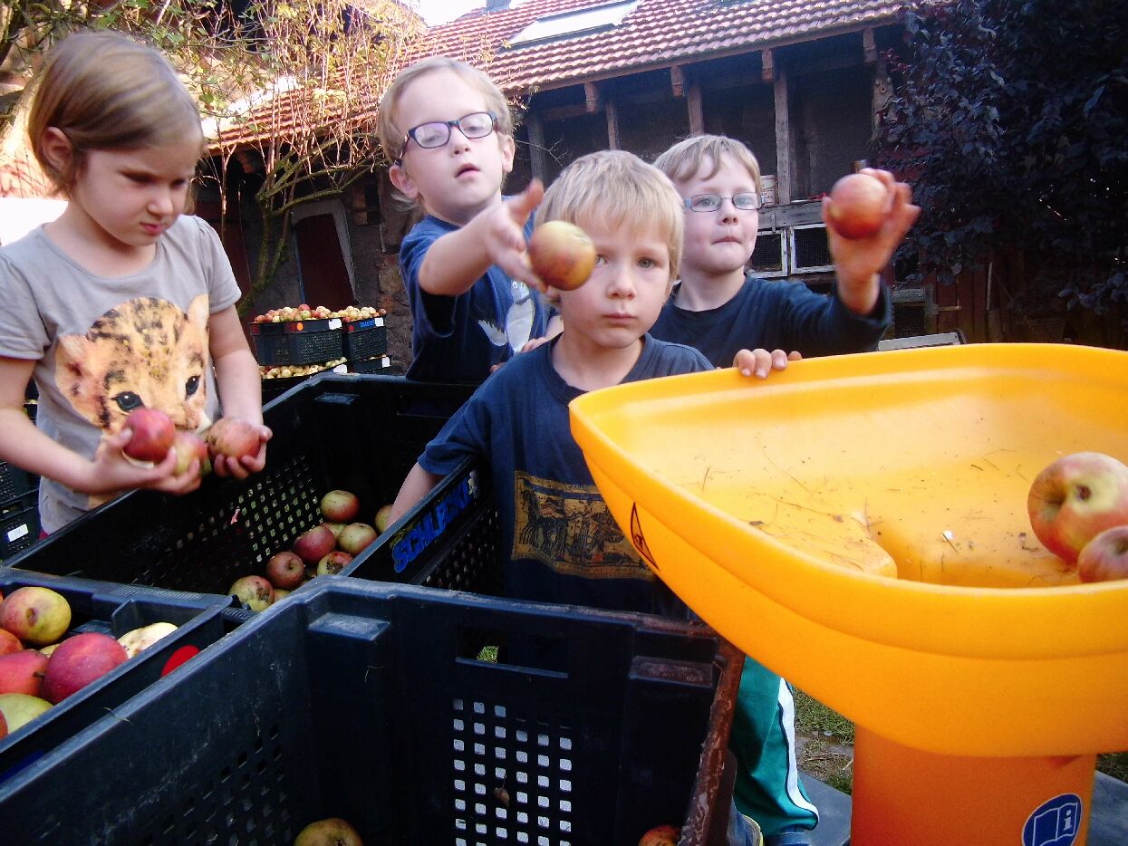 Kinder und Eltern treffen sich am frühen Morgenund sammeln kistenweise Äpfel auf der Streuobstwiese in IIfeld oder in Nordhausen in der Gumpe.