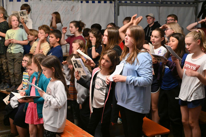Am Abend steigt die alljährliche Hitparade. Einige Stars begrüßen wir im großen Zelt und singen bis zum Sonnenuntergang.