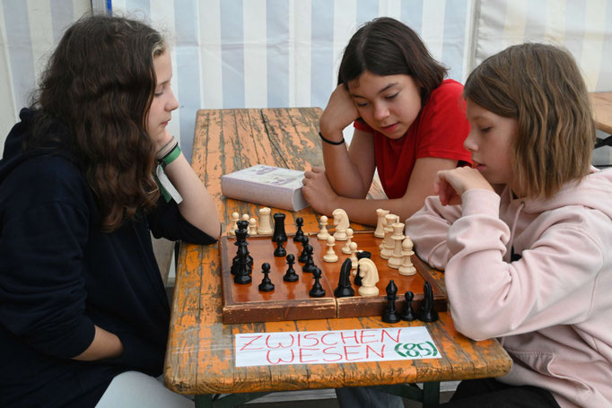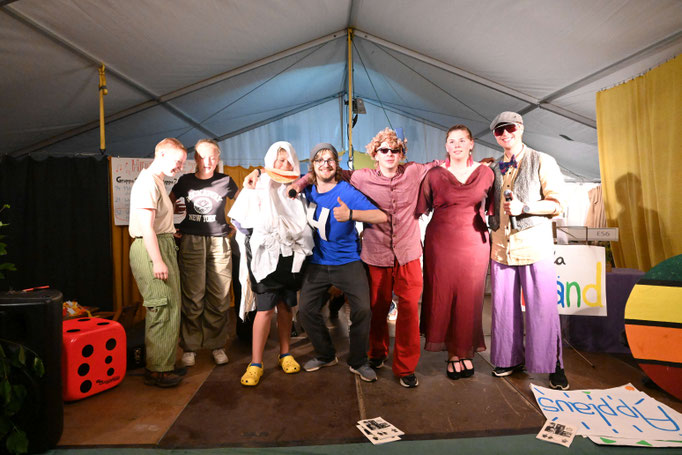 Die Nachmittagszeit gehört wieder ganz dem Handwerk. Die „Kullerkerlchen“ balancieren ihre Murmeln auf verschlungenen Wegen und die „Frischbiester“ lassen ihre gestalteten Discscheiben durch die Luft fliegen. Die „Laberbrocken“ gestalten Erzählsteine in den schönsten Farben. Rundherum herrscht reges Treiben und wo Hilfe gebraucht wird, sind die „Restpfosten“ emsig zur Stelle.