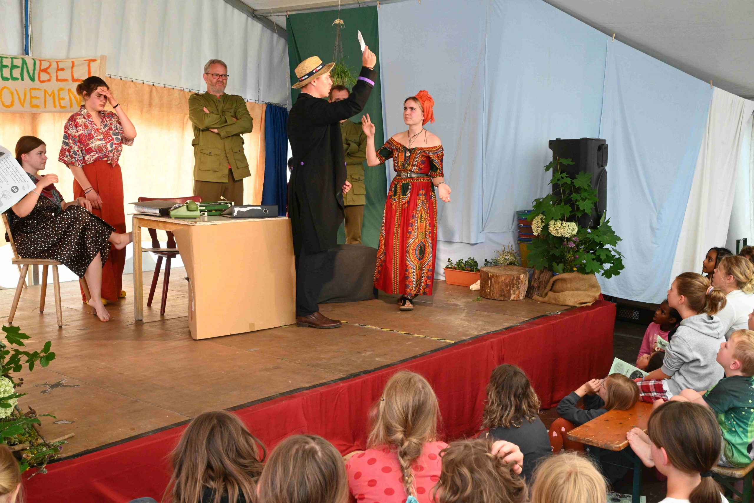 Gespannt erwarten wir das Theaterstück um zu sehen wie Wangari das „Green Belt Movement“ Konzept weiterentwickelt.