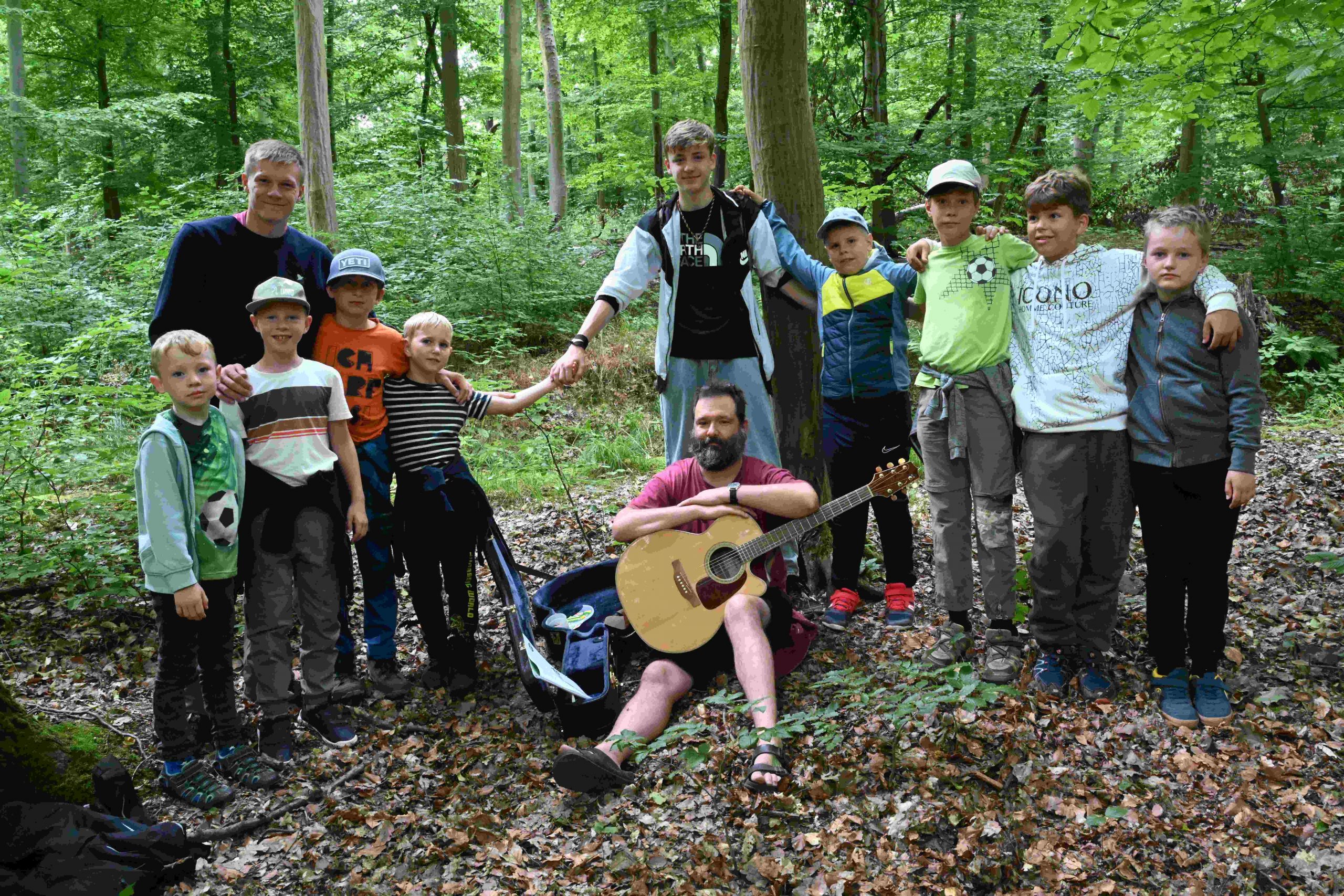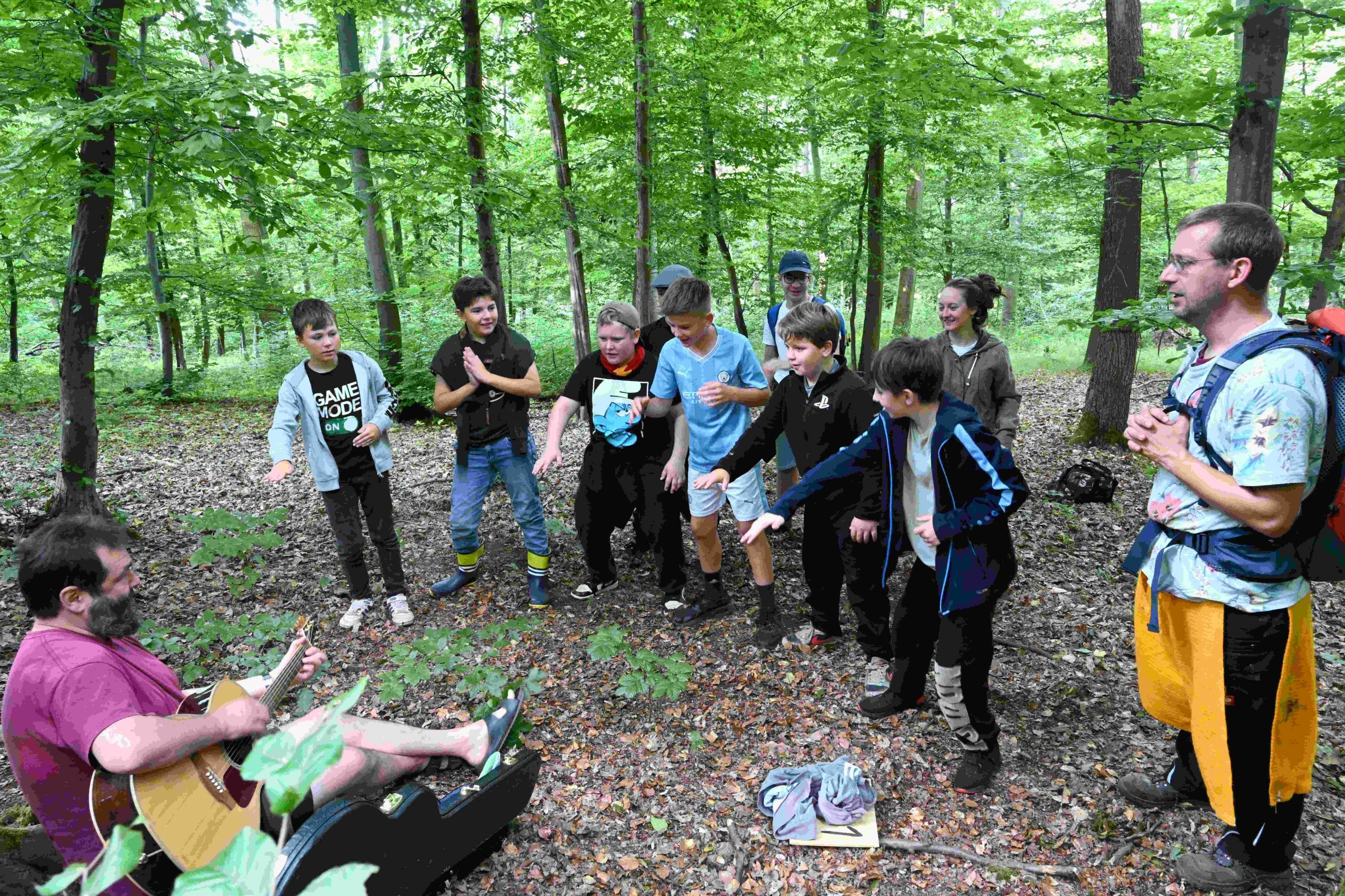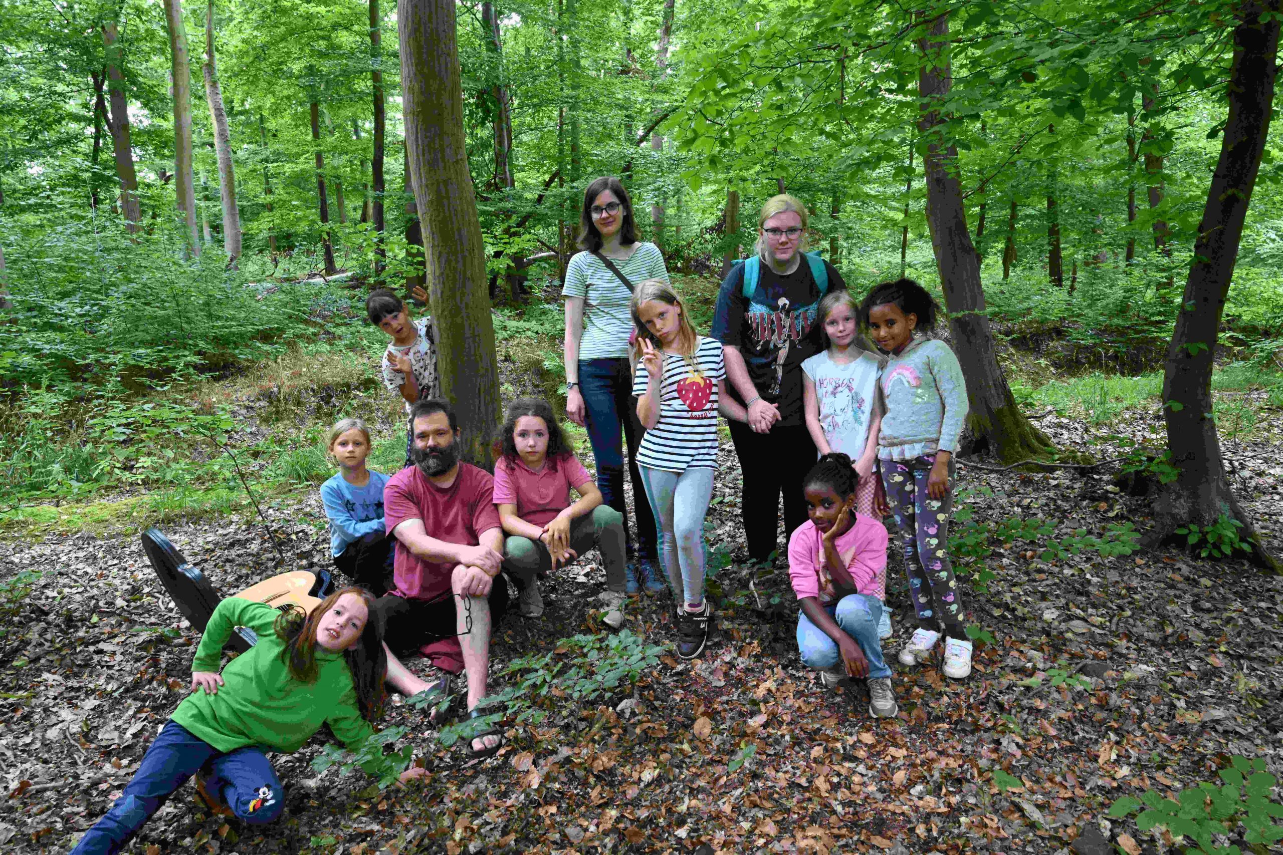 Unser Nachmittag führt uns in den Wald. Beim diesjährigen Geländespiel ist es unsere Aufgabe Wangari beim Pflanzen der Bäume behilflich zu sein und neue Samen zu sammeln. Und so streifen wir durch die Wälder, lösen Rätsel, heben Pflanzlöcher aus und treffen dabei auf viele Personen aus dem Theaterstück. Nach so viel Bewegung und Erlebten ist es genau richtig, dass wir am Grill mit leckeren Würstchen zum Abend versorgt werden.