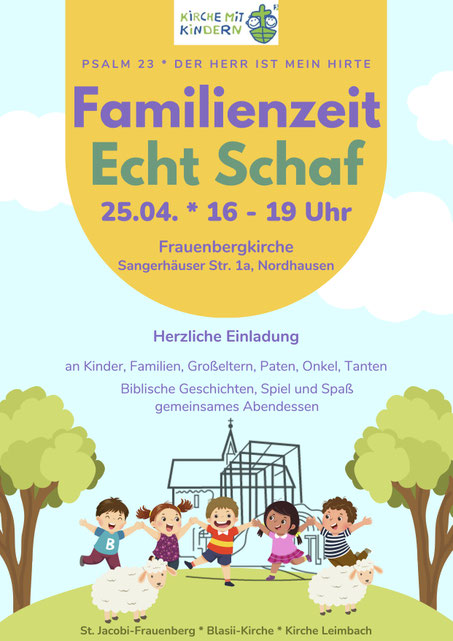 Am kommenden Aktionstag am Freitag um 15 Uhr machen sich Mitarbeiter und Kinder des KILA auf den Weg zur Frauenberg Kirche. Geplant ist dort ein Nachmittag für Kinder und Familien im Garten und um die Kirche herum. Dabei gibt es biblische Geschichten von Schafen und Hirten mit dazu passenden Spielen und Aktionen. Der Abend soll dann mit einem gemeinsamen Abendessen ausklingen. Gemeinsamer Treffpunkt ist pünktlich um 15.00 Uhr im KILA. Sollten die Kinder ohne Eltern teilnehmen, ist Ankunft im KILA wieder um 17.00 Uhr. Eltern, Großeltern und weitere Betreuer dürfen zum Aktionstag mitgebracht werden. Die Aktionstage finden normalerweise aber im Pfarrhaus der Blasii Kirche statt und die Teilnahme ist grundsätzlich kostenlos. Weitere Infos zu den Gruppen und Angeboten des KILA gibt es bei Gemeindepädagoge Frank Tuschy und der Mitarbeiterin Grit Scholz unter 03631/988340 oder über www.kinder-kirchen-laden.de oder per E-Mail: grit.scholz@ekmd.de